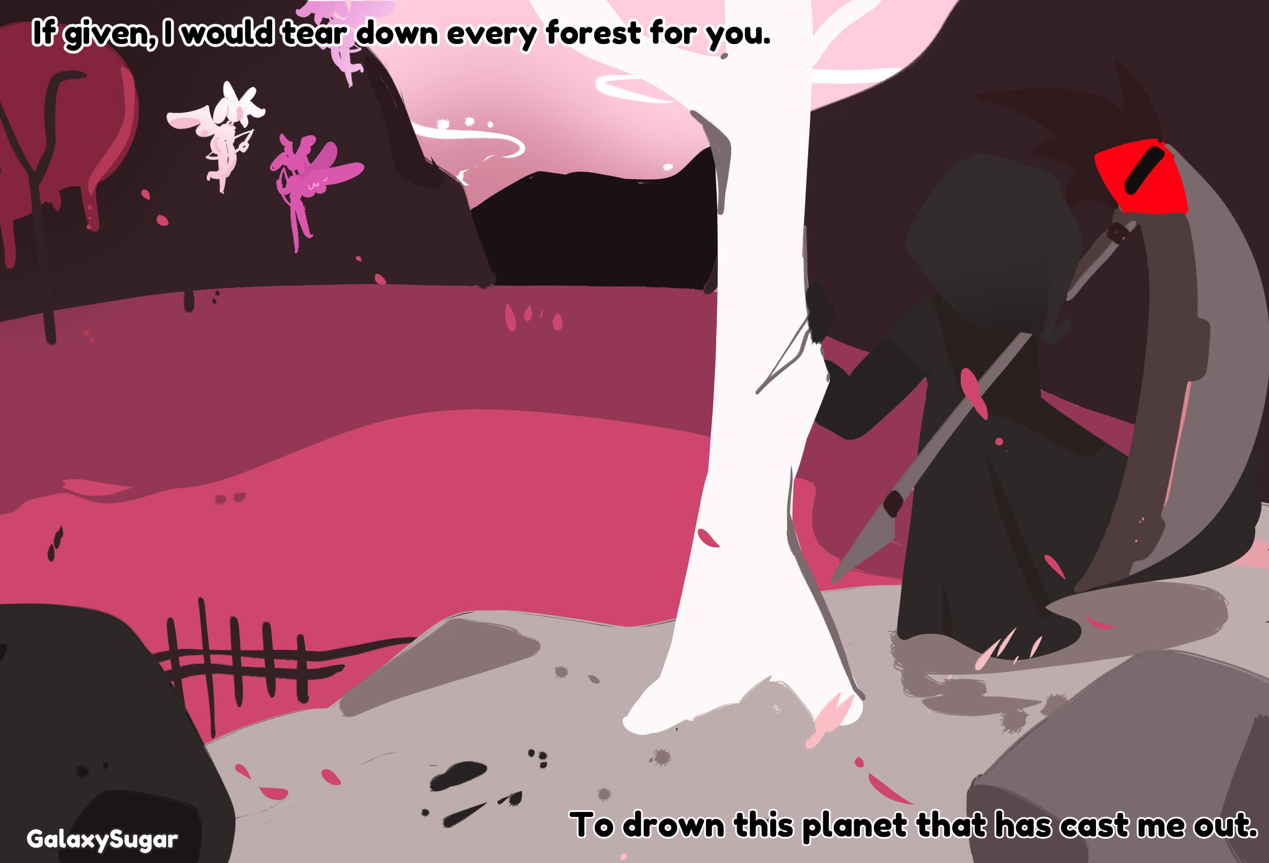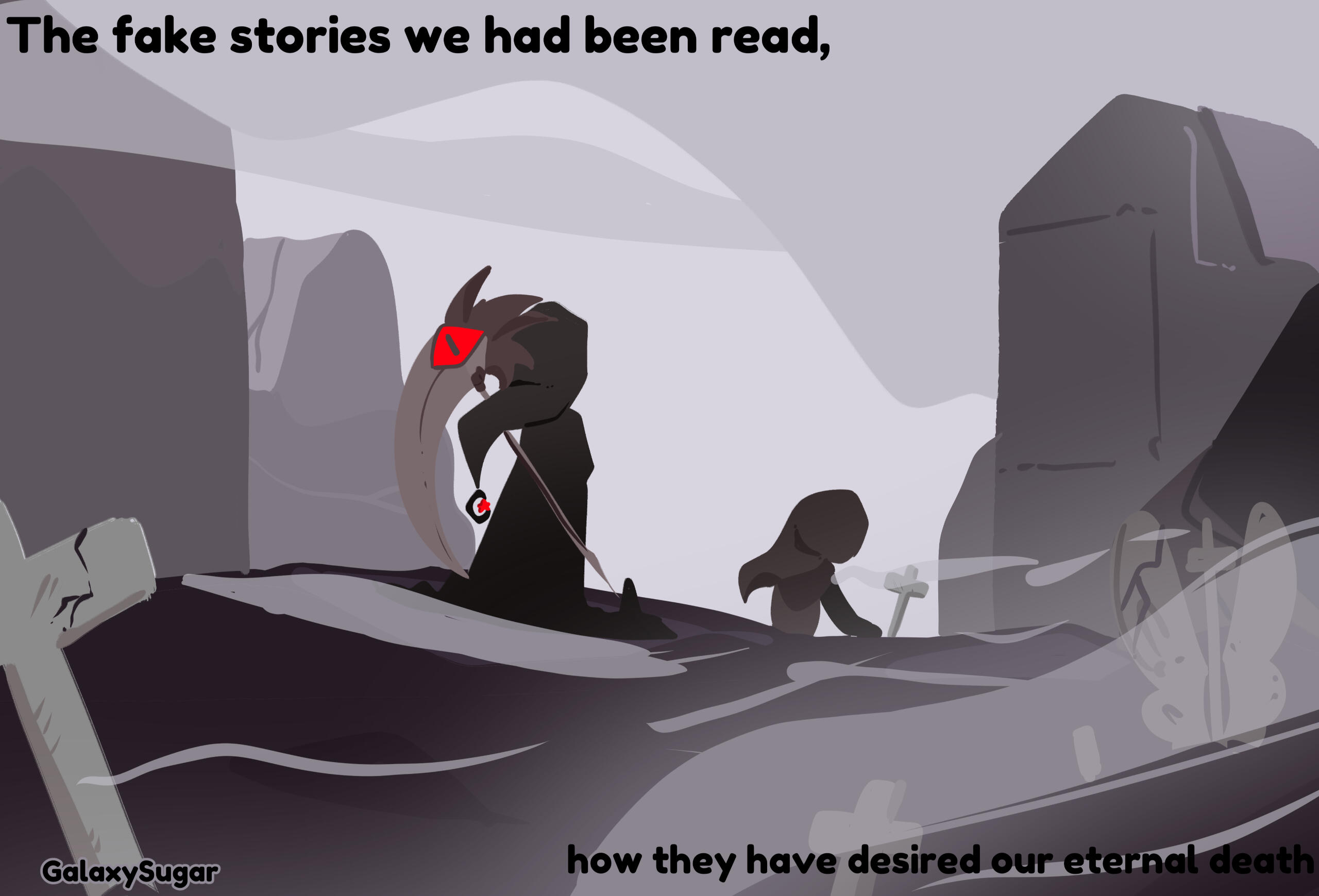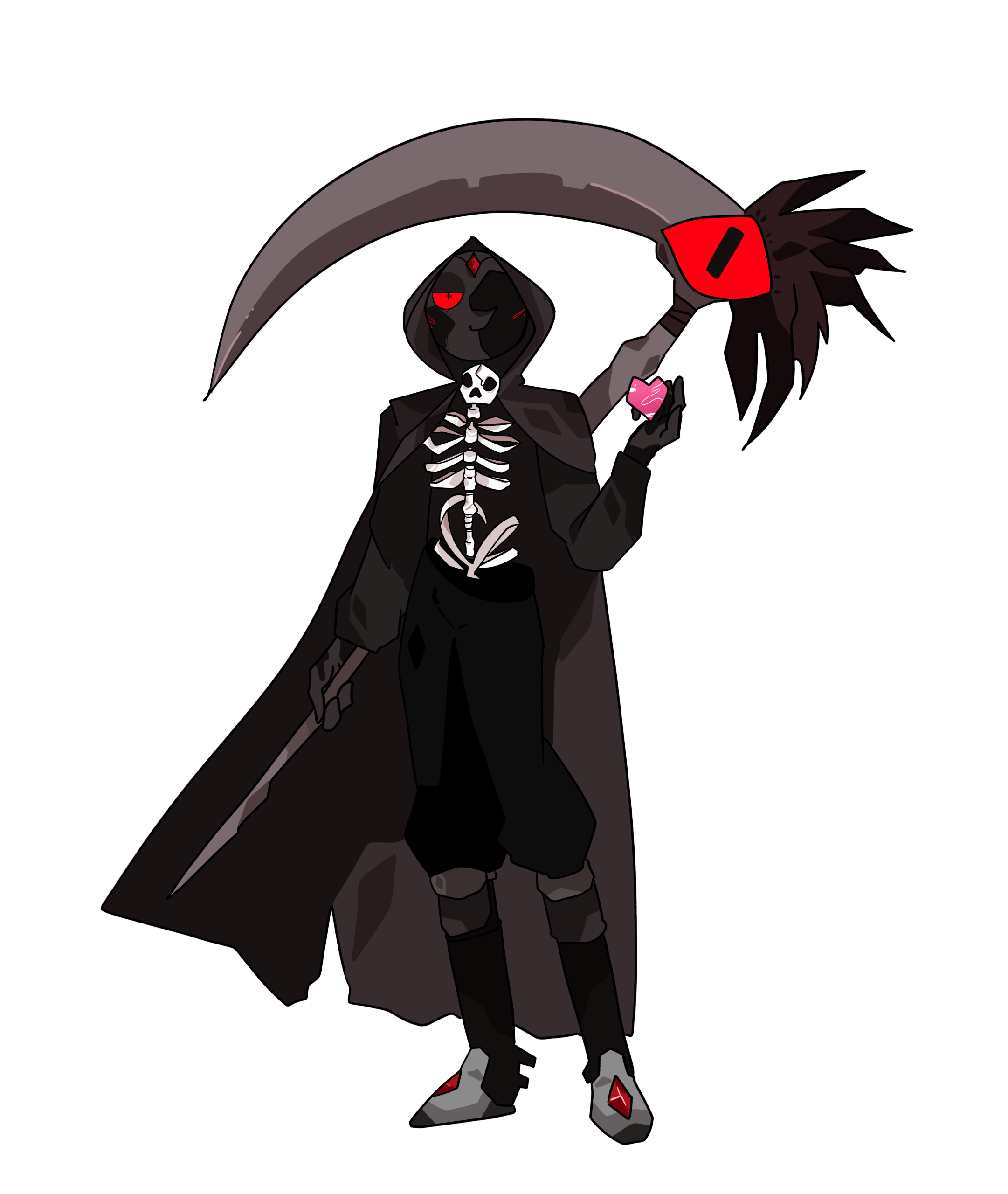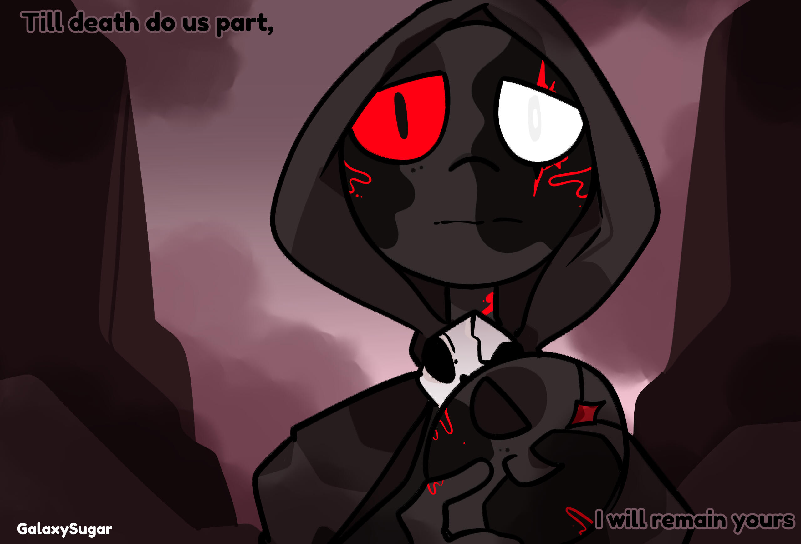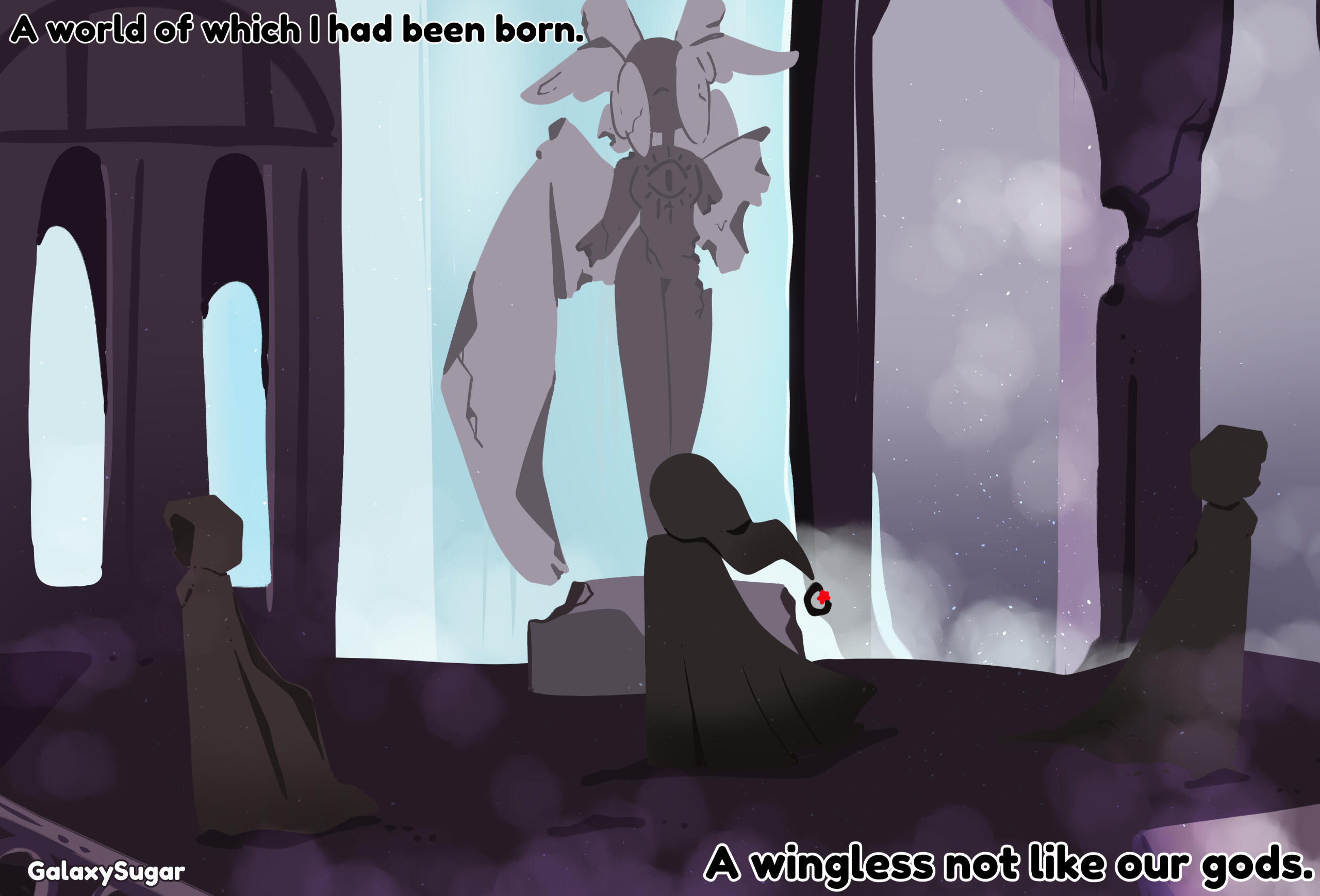 Wingless GrimTaken away from his home in Merian, he spent his childhood living off crumbs and sharing homes with many other kids like him.While originally growing up physically normal, his body would begin to rot and slowly deteriorate in his teen-hood. Gaining blindness in his left eye.In order to hide their wingless head and back. They would wear cloaks to protect themselves. Many living in old temples and abandoned locations away from Angels.While many detest their cursed lives from the gods that once ruled. Grim prayed for their awakening to fix the curse they had given them.While running off to see the sleeping immortals in Velloria, he came across Amora and became smitten by their beauty.Coming back any day awaiting her, she would bring him food and teach him to read and write. The two slowly falling in love with one another.Though as the two grew and the war raged, he was forced to watch her become something she herself hated. A warrior of Eos, a Cupid.Forced to flee back to his home Nevarian, he was assigned to charge headfirst onto the battlefield to push the Cupids away.Else their lands and people would be no more.