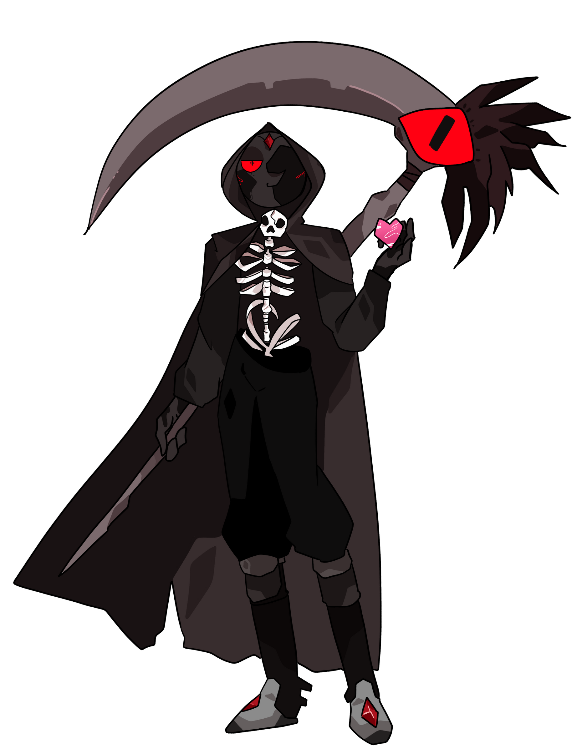 Wingless GrimTaken away from his home in Merian, he spent his childhood living off crumbs and sharing homes with many other kids like him.While originally growing up physically normal, his body would begin to rot and slowly deteriorate in his teen-hood. Gaining blindness in his left eye.In order to hide their wingless head and back. They would wear cloaks to protect themselves. Many living in old temples and abandoned locations away from Angels.While many detest their cursed lives from the gods that once ruled. Grim prayed for their awakening to fix the curse they had given them.While running off to see the sleeping immortals in Velloria, he came across Amora and became smitten by their beauty.Coming back any day awaiting her, she would bring him food and teach him to read and write. The two slowly falling in love with one another.Though as the two grew and the war raged, he was forced to watch her become something she herself hated. A warrior of Eos, a Cupid.Forced to flee back to his home Nevarian, he was assigned to charge headfirst onto the battlefield to push the Cupids away.Else their lands and people would be no more.